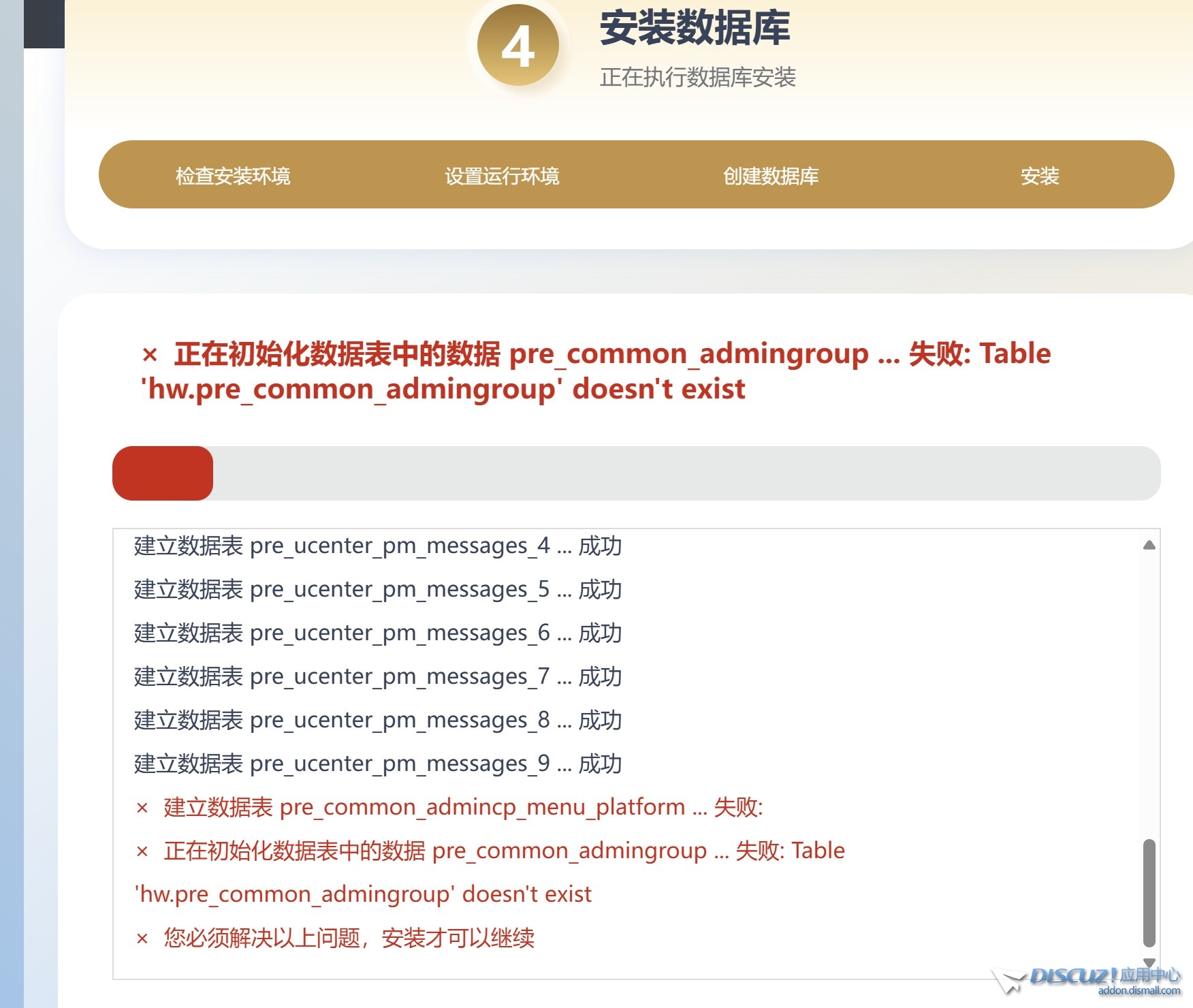 數(shù)據(jù)名稱和密碼都填寫好了,點(diǎn)擊下一步安裝,提示這個(gè)錯(cuò)誤,求各路大神指導(dǎo)一下,這個(gè)是什么問題,怎么解決! 查看全文