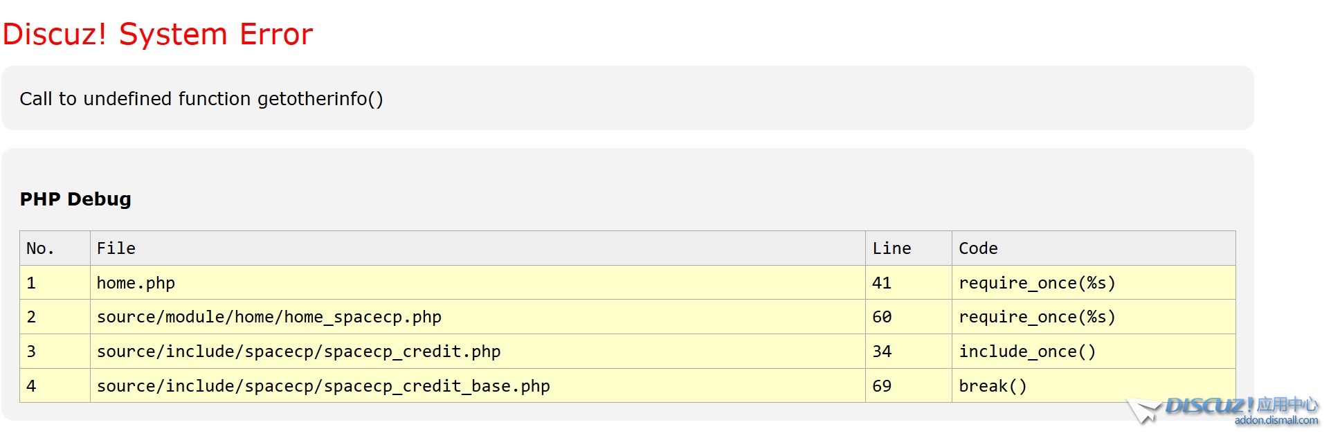 ![]() 可以先看一下 source\function\function_credit.php 這個文件是否丟失 |