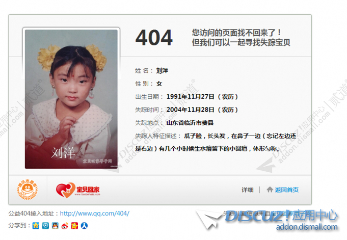 有沒有一款404公益插件 就是404頁面是 寶貝回家這種的 靜態(tài)頁面我會 我的想法是 動態(tài)頁面 根據(jù)用戶的訪問IP 判斷用戶所在地 然后展示離用戶最近的尋人 ... 查看全文