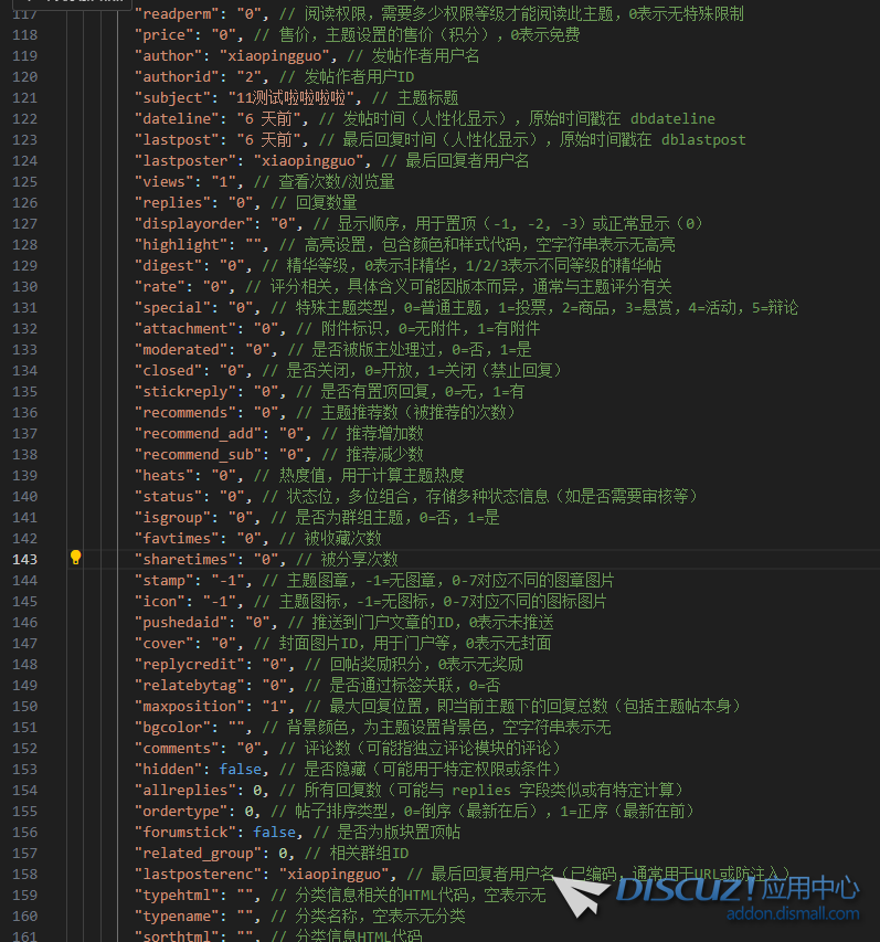- "dateline": "6 天前", // 發(fā)帖時間(人性化顯示),原始時間戳在 dbdateline