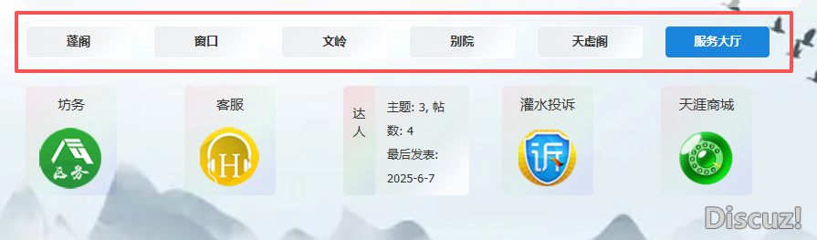 以上是在已經(jīng)修改的一級分類下的板塊樣式的基礎(chǔ)上,修改而來。由 trae AI提供的原始數(shù)據(jù)。 至于,沒有前面工作,沒測試過。 重點是,在后臺/論壇,一級板塊下的橫排數(shù)目。請根據(jù)網(wǎng)站需求,應(yīng)對更改和使用。 上面方法真的非常簡單,添加的位置就一個地方,一步到位,不用修改其它。但是要隱藏原來標題欄代碼,即 隱藏或刪除標題所在的diy標簽以內(nèi)的所有代碼。 另外,便于日后管理,請駁離樣式代碼到目前使用的模板樣式文件中,其它放到論壇首頁文件里,即上面所說的文件位置里。 并做好注釋,便于日后程序升級時,方便查找,復(fù)制到升級的文件中。 |