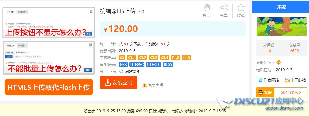 表彰 作者乘涼所制作的 編輯器H5上傳插件 (圖片) 個(gè)人認(rèn)為是DZ史上最棒的圖片上傳H5插件 還有很多 這里就不一一截圖 。 總之服務(wù)很好 但是建議大家 非作者開發(fā)的插件 不要麻煩人家,因?yàn)?... 查看全文