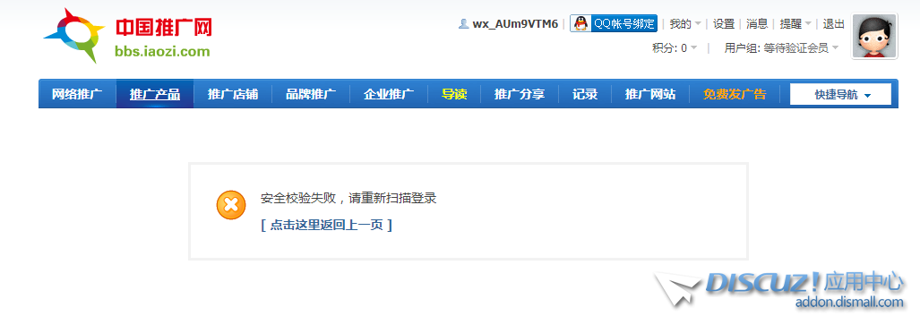 Discuz! 微信登錄提示 安全校驗失敗,請重新掃描登錄 請問怎么回事? 查看全文