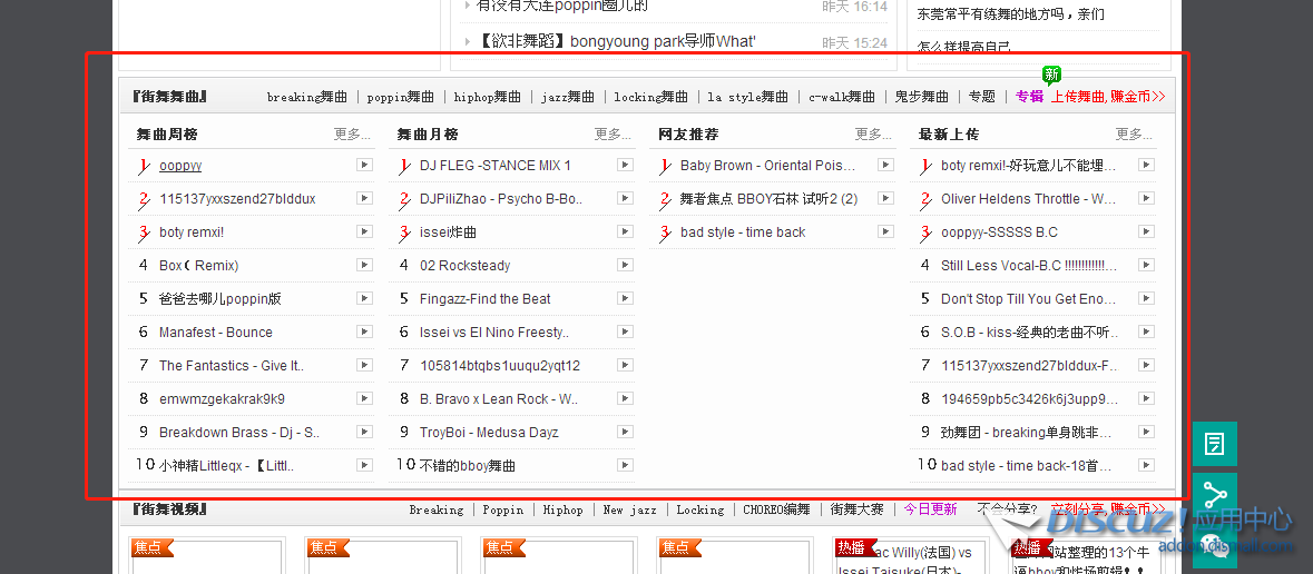 DIV+css 這個好像是很久之前的七禧開發(fā)的DJ音樂版的DISCUZ |