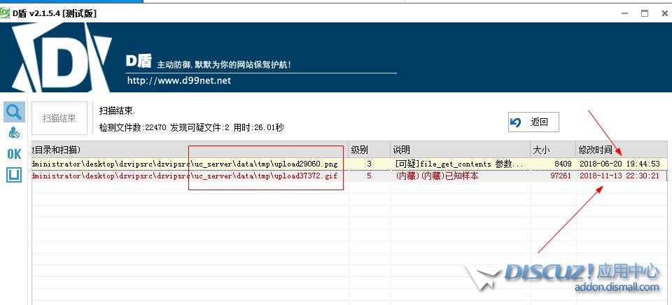 今天網(wǎng)站搬家,順手用最新版的D盾掃描了一下,發(fā)現(xiàn)兩個(gè)可疑文件,圖片格式。 路徑為:uc_server\data\tmp 將格式圖片格式的后綴改為 .php,用記事本打開,發(fā)現(xiàn)一句話木馬,兩個(gè)文件分別如下: <?php ... 查看全文