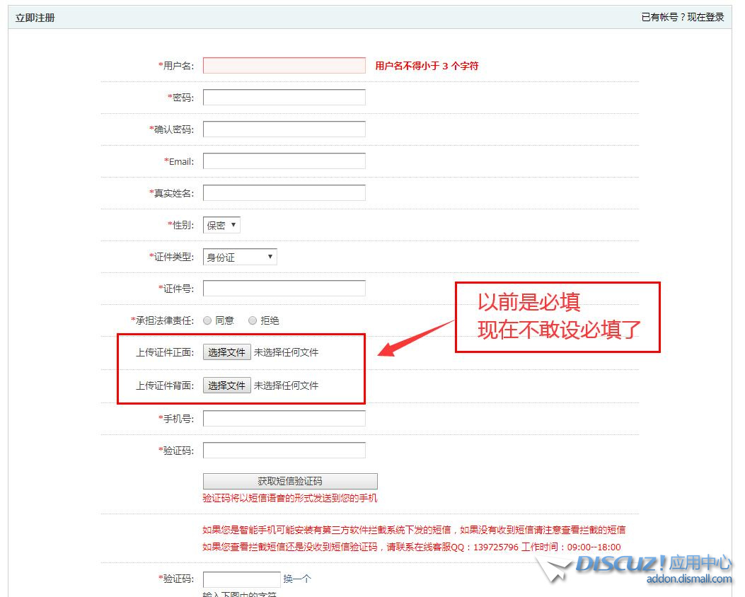 本帖最后由 石橋佬 于 2020-1-6 20:26 編輯 如題,為了實(shí)行實(shí)名注冊的目的,我的論壇用戶欄目一直自定義了上傳證件一欄,設(shè)置為必填。用了這么多年這么多版本,一直未出過錯。PC端和手 ... 查看全文