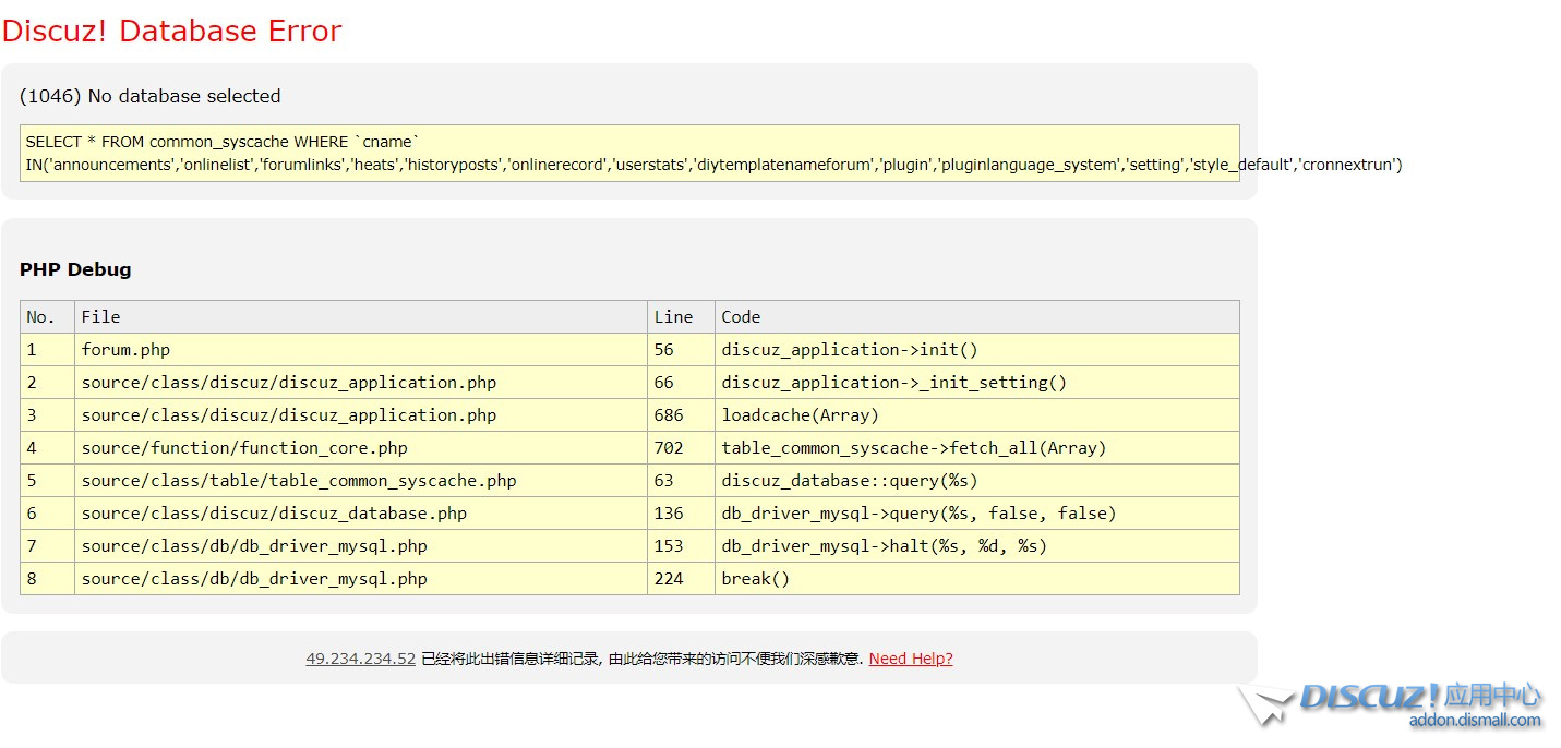 這怎么辦啊,突然就這樣了 Discuz! Database Error (1046) No database selected SELECT * FROM common_syscache WHERE `cname` IN('announcements','onlinelist','forumlinks','heats','historyposts','onlinere ... 查看全文
