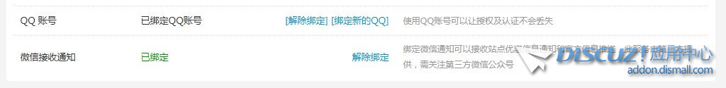 前往discuz應(yīng)用中心,點(diǎn)擊網(wǎng)站信息,基本信息最下面一欄有“綁定微信”,將你的站點(diǎn)與微信公眾號(hào)綁定,及時(shí)的接收應(yīng)用中心通知和優(yōu)惠信息哦~ 不過注意,這個(gè)是第三方哦,不是官方的。 (管它的呢,我綁還不行嗎?。? ... 查看全文