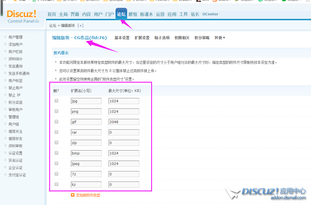 allthebest 發(fā)表于 2020-8-27 15:37 應(yīng)該是版塊設(shè)置優(yōu)先吧,然后全局,再然后用戶組 用戶組設(shè)置:圖片最大40M,附件類型允許jpg,png,gif,bmp,rar,zip,7z,kz 全局設(shè)置:圖片最大2M 版塊設(shè)置:圖片最大1M,附件不允許rar,zip,7z,kz |