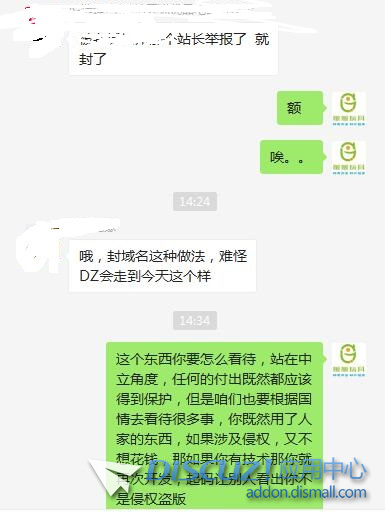 本帖最后由 媛媛玩具批發(fā) 于 2019-6-16 15:12 編輯 剛才一個dz交流群,一位網(wǎng)友因為使用盜版dz應(yīng)用模板被舉報被封域名,我說了一些我的觀點。 我個人認為,應(yīng)該尊重別人的付出,使用別人的東西有所付出也是應(yīng)該 ... 查看全文
