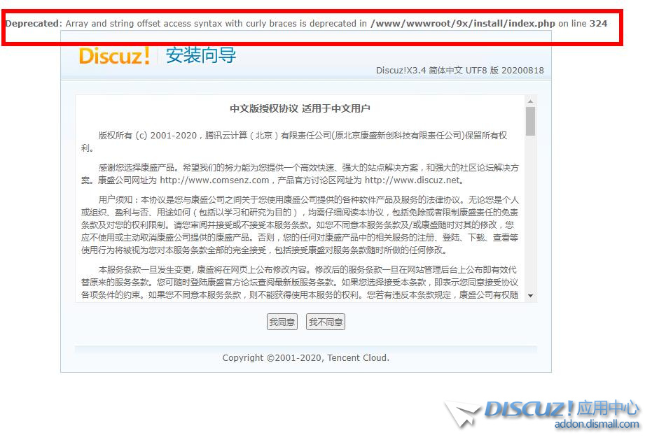 PHP7.4不再支持使用大括號訪問數(shù)組以及字符串的偏移 訪問www/wwwroot/9x/install/index.php on line 324 把第324行 大括號 {} 改成[] 這樣就不提示了 |
