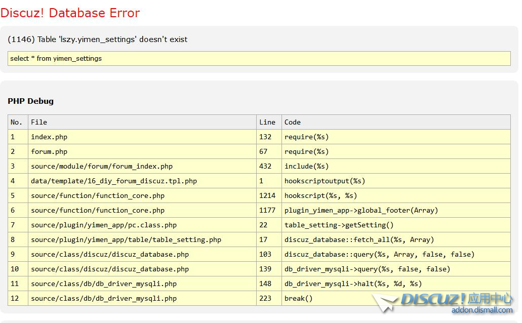 yimen_app這個(gè)應(yīng)用關(guān)掉即可,這是提示這個(gè)應(yīng)用所屬的數(shù)據(jù)表不存在了 |