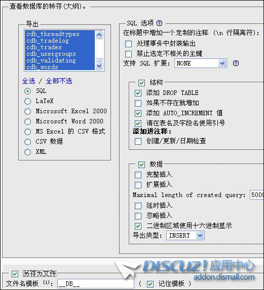 數(shù)據(jù)備份: 在 phpmyadmin 中打開論壇數(shù)據(jù)庫,點菜單欄的“導出”,在左邊的導出框里將所有表“全選”,右邊的“結構”欄,將“添加 DROP TABLE”、“添加 AUTO_INCREMENT 值”和“請在表名及字段名使用引號”選擇 ... 查看全文