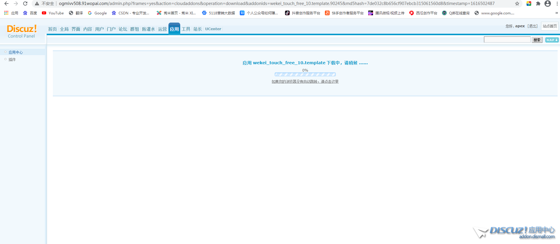 模板點擊安裝后就這樣卡了一下午了,用哪種瀏覽器都不行,正常嗎 查看全文