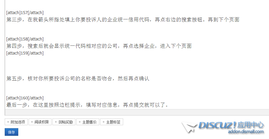 請教老師們,我這個論壇點擊發(fā)帖時,在帖子里上傳有圖片時,但帖子發(fā)出去了卻沒有圖片顯示,然后點擊編輯時,看到有圖片附件的代碼,看下圖,可就是沒顯示, 通過編輯插入圖片的后,再點保存就沒有反應,也就 ... 查看全文