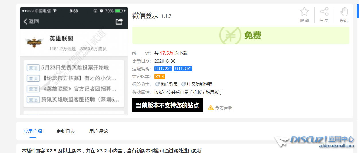 該版本支持 Discuz! x 3.4,你夠競用什么版本? |