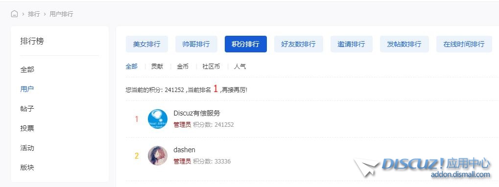 [已解決] discuz3.5怎么查看某一個積分的排行榜 |