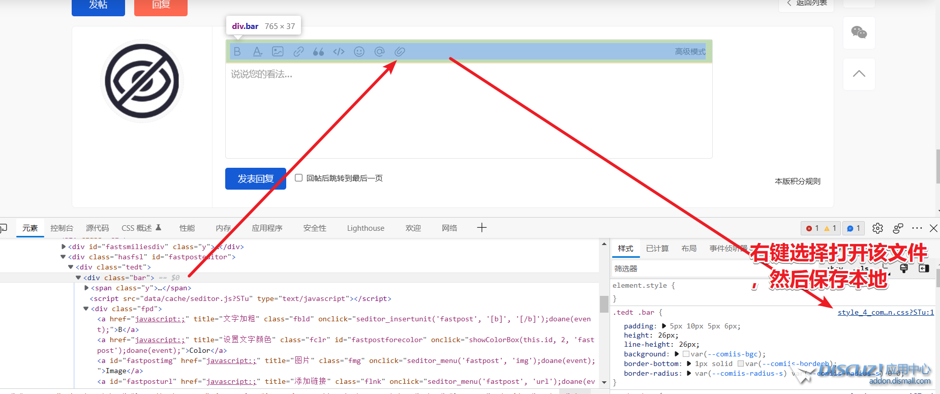 找到代碼后,以上全部復(fù)制到新建文本中備用,然后,打開\template\你的默認(rèn)模板\common\common.css文件