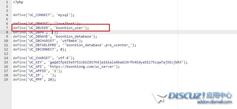 好了之后打開 config 的 config_global.php 和 config_ucenter.php,看有沒有剛添加的“用戶”,沒有就自己加上