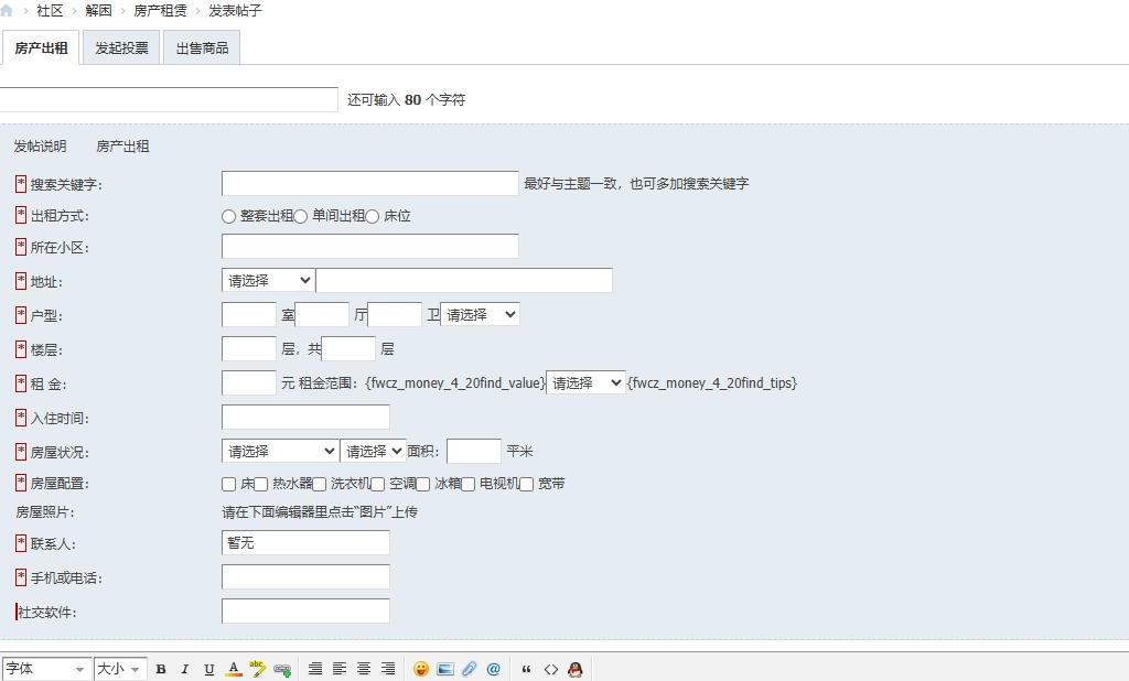 [已處理] Discuz! X3.5 房屋租賃調(diào)用模板之后出現(xiàn)發(fā)帖的時候 租金范圍不能選只顯示代碼{fwcz_money_4_20find_tips} |