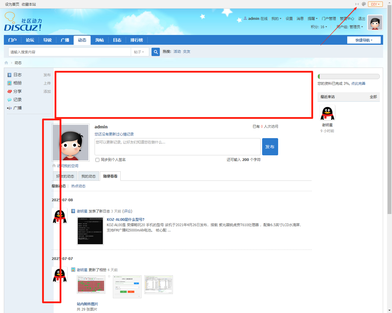 [已處理] Discuz!X3.5后臺(tái)開(kāi)啟動(dòng)態(tài)功能后在寬屏模式下嚴(yán)重錯(cuò)位的BUG |
