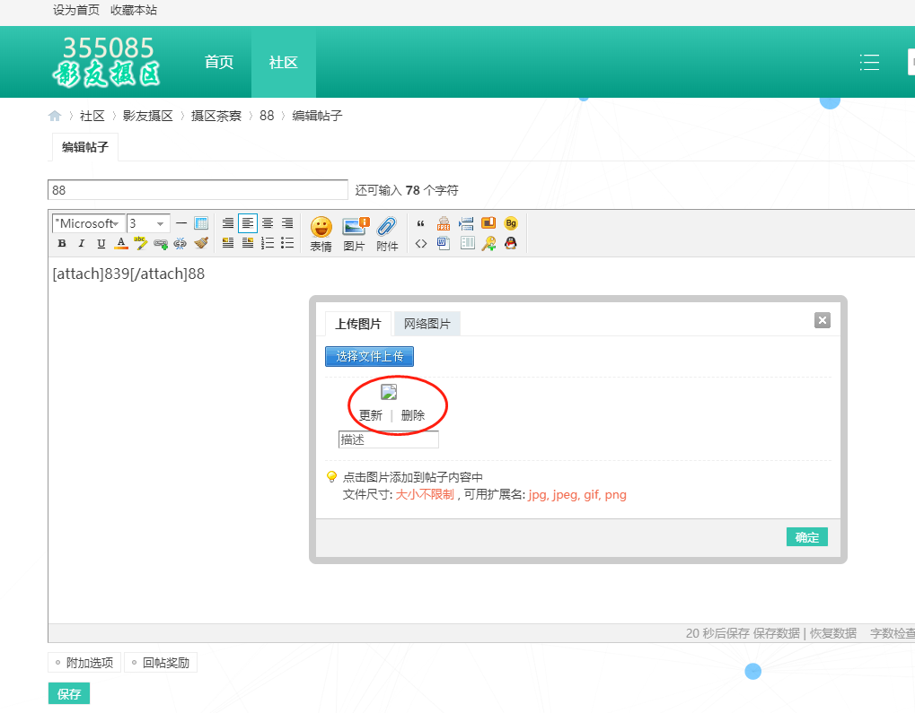 [新問題] 上傳大容量照片附件,上傳后無法預(yù)覽,點(diǎn)擊圖片可以插..... |