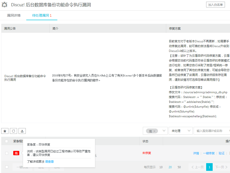 [已處理] 阿里云檢測(cè)到—Discuz! 后臺(tái)數(shù)據(jù)庫(kù)備份功能命令執(zhí)行漏洞 |